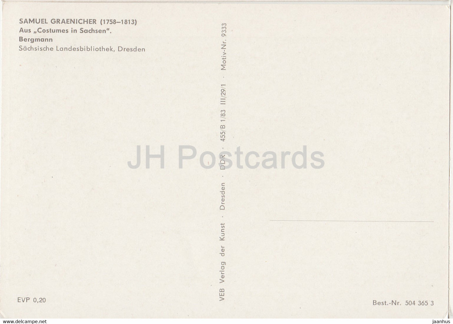 painting by Samuel Graenicher - Costumes In Sachsen - Bergmann - German art - Germany DDR - unused