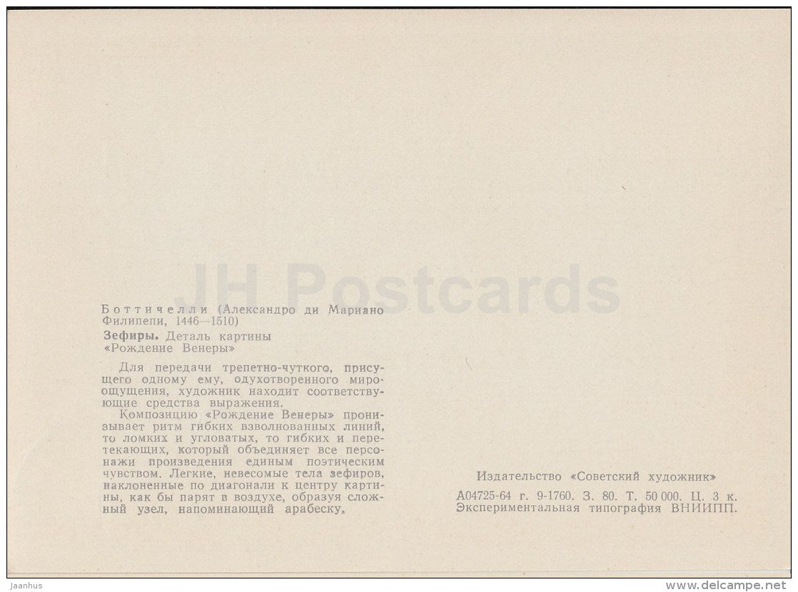 painting by Sandro Botticelli - Gale , 1485 - Birth of Venus - Italian Art - 1964 - Russia USSR - unused