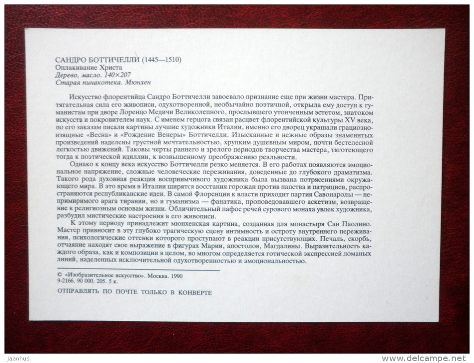 painting by Sandro Botticelli - Lamentation of Christ - italian art - unused