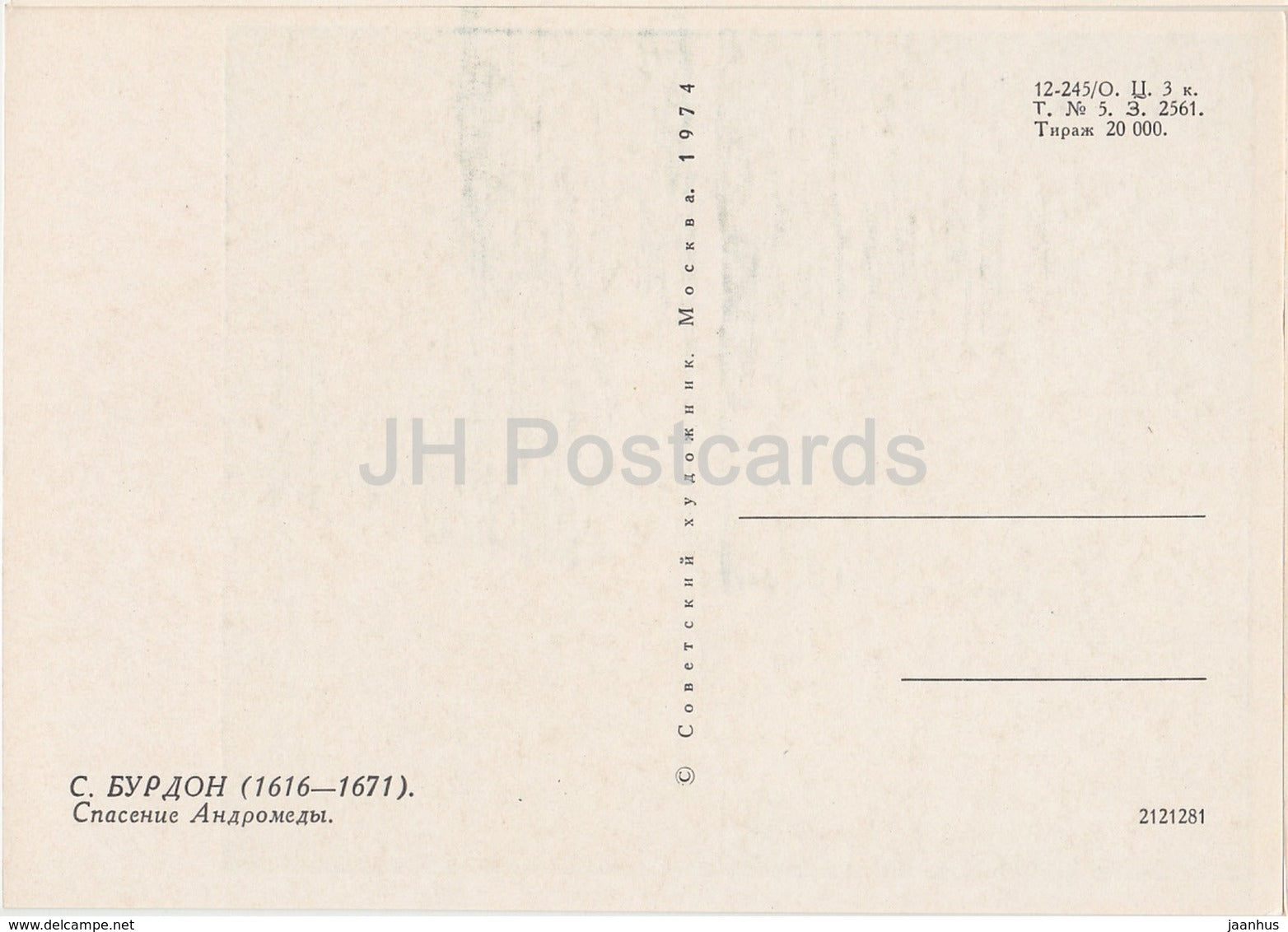 painting by Sebastien Bourdon - Salvation of Andromeda - French art - 1974 - Russia USSR - unused
