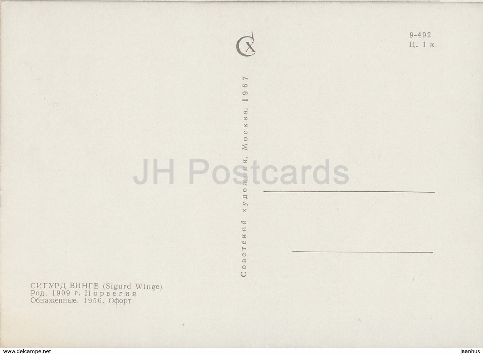 painting by Sigurd Winge - Naked - nude - Norwegian art - 1967 - Russia USSR - unused