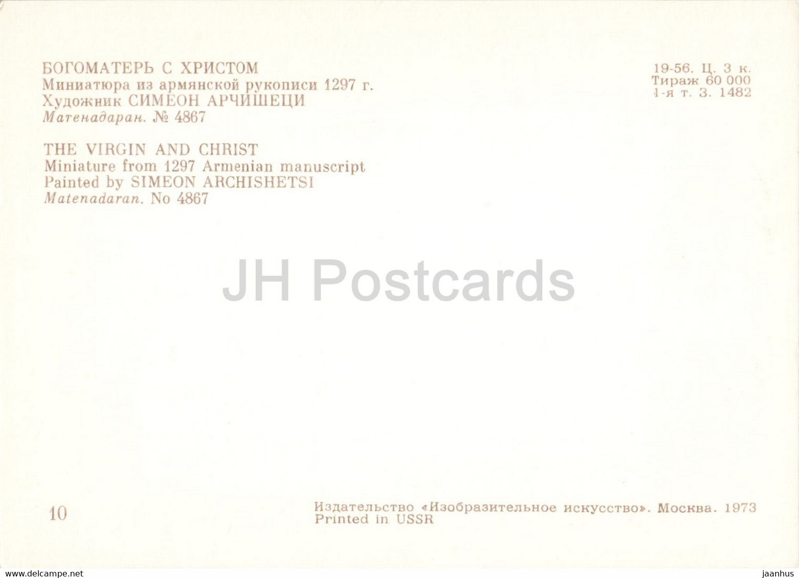 painting by Simeon Archishetsi - The Virgin and Christ - Armenian miniature - Armenian art - 1973 - Russia USSR - unused