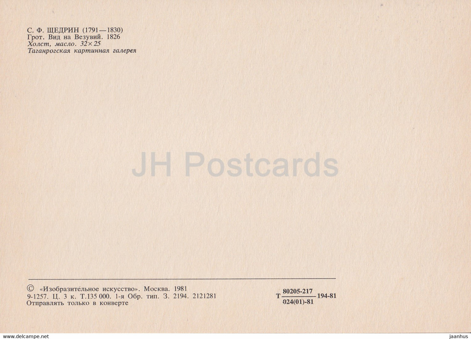 painting by Sylvester Shchedrin - Grotto . Vesuvius view - Russian art - 1981 - Russia USSR - unused