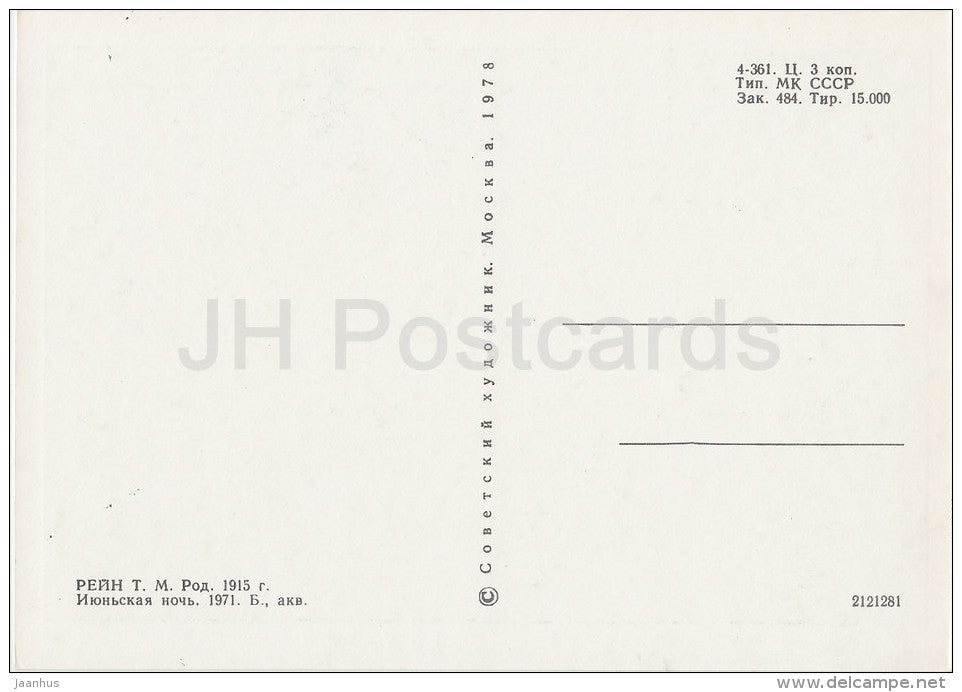 painting by T. Rein - June Night , 1971 - Russian art - 1978 - Russia USSR - unused