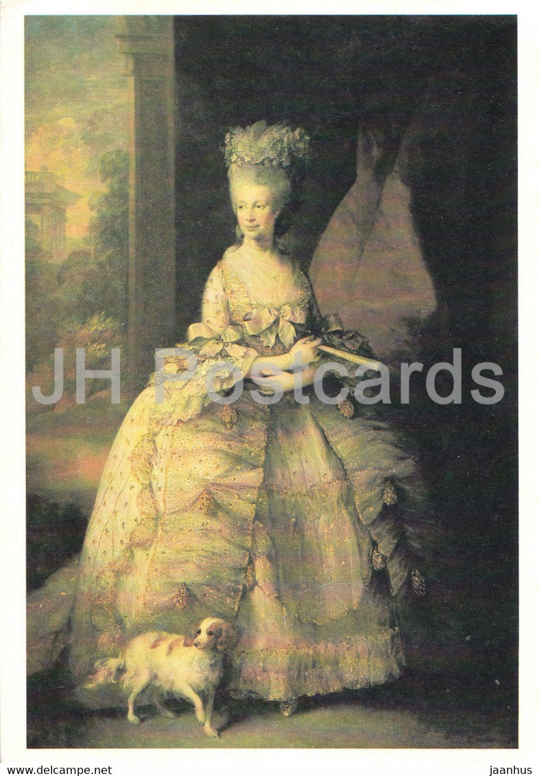 painting by Thomas Gainsborough - Konigin Charlotte von England - dog - English art - 1989 - Germany - used