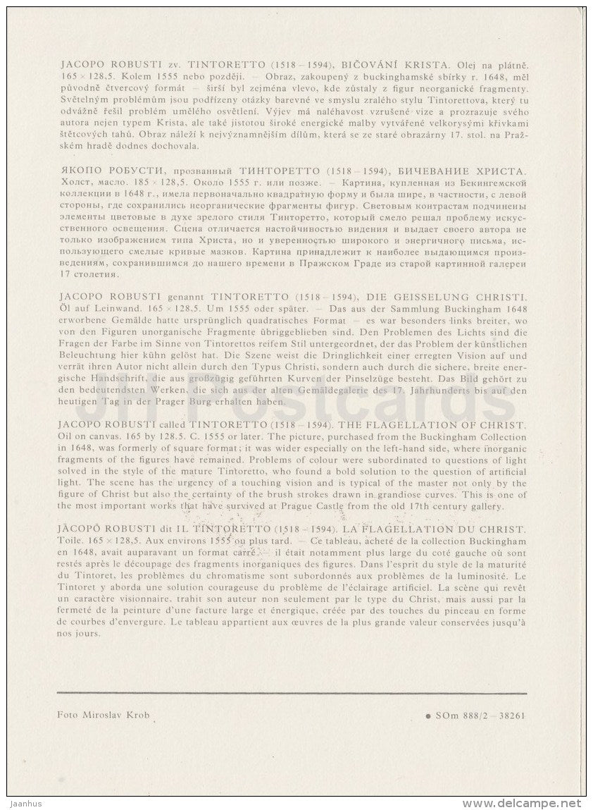painting by Tintoretto - The Flagellation of Christ , 1555 - Italian art - large format card - Czech - unused