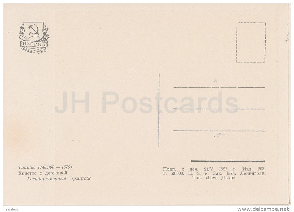 painting by Titian - Christ with Globe - Italian art - Russia USSR - 1957 - unused