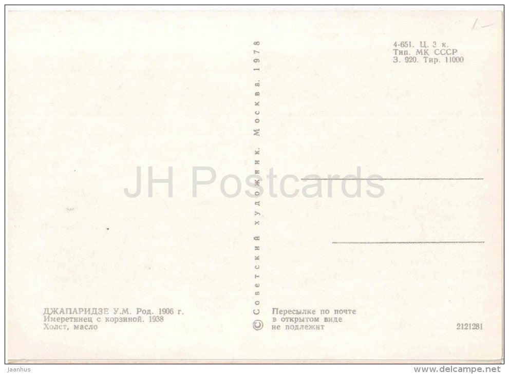 painting by U. Dzhaparidze - Imertian with Basket , 1938 - old man - georgian art - unused