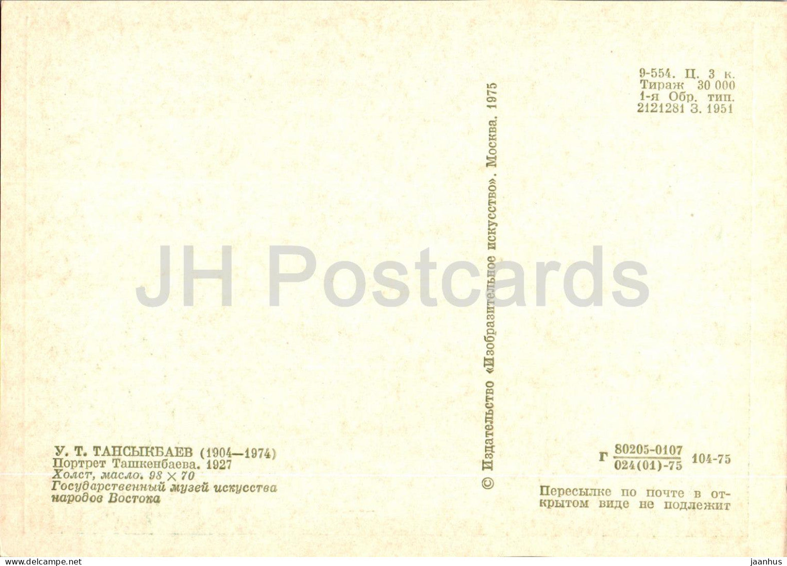 painting by U. Tansykbayev - Portrait of Tashkenbayev - folk costume tea - Uzbekistan art - 1975 - Russia USSR - unused