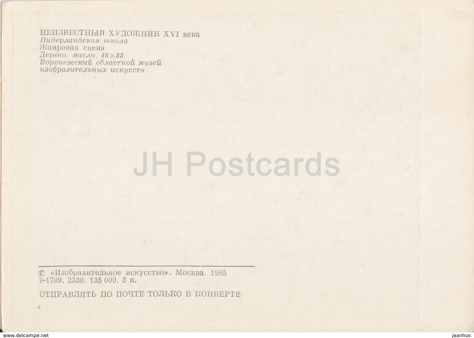 painting by Unknown Artist - Genre Scene - Dutch art - 1985 - Russia USSR - unused