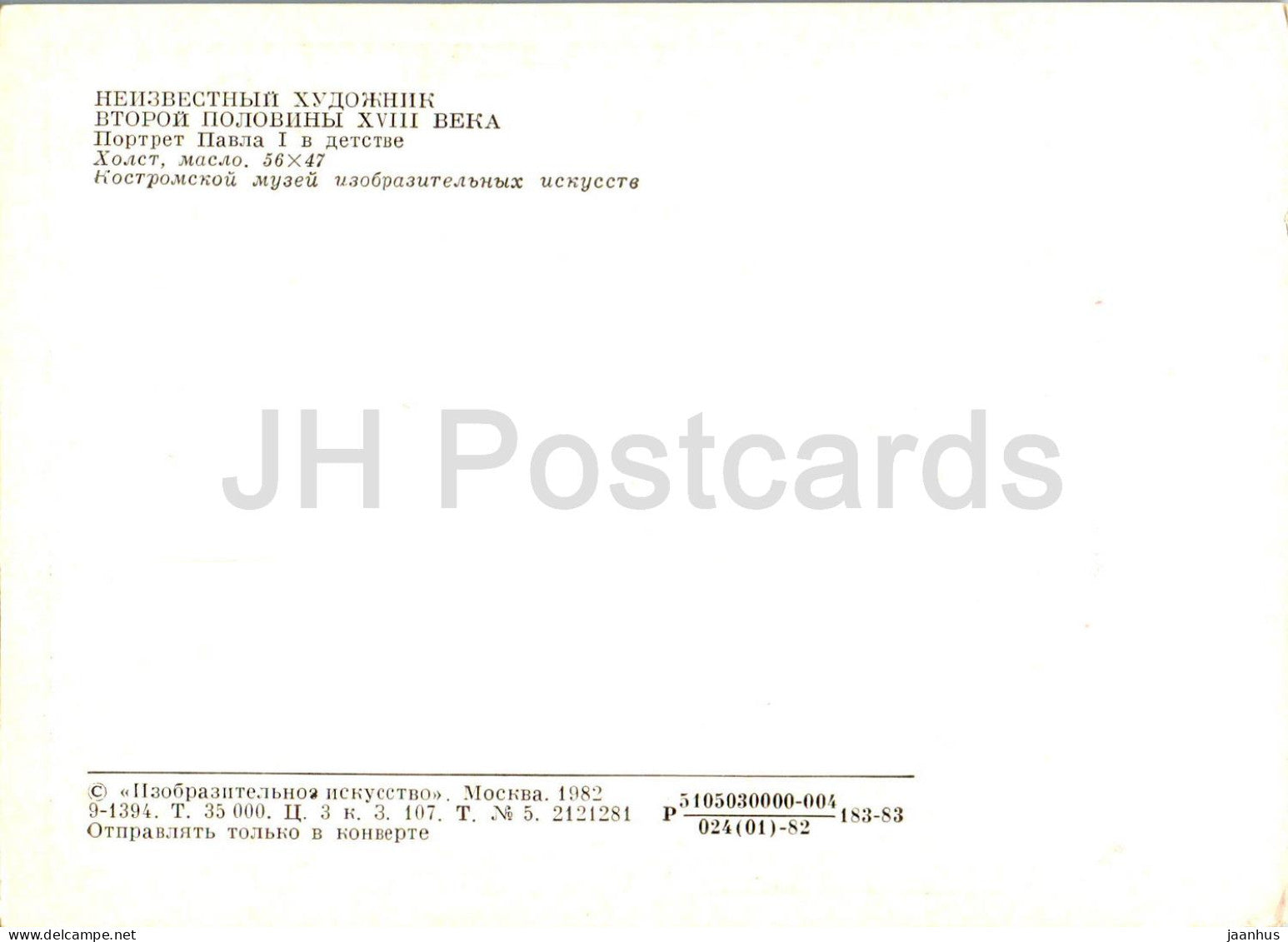 painting by Unknown Artist - Pavel I as a child - Russian art - 1982 - Russia USSR - unused