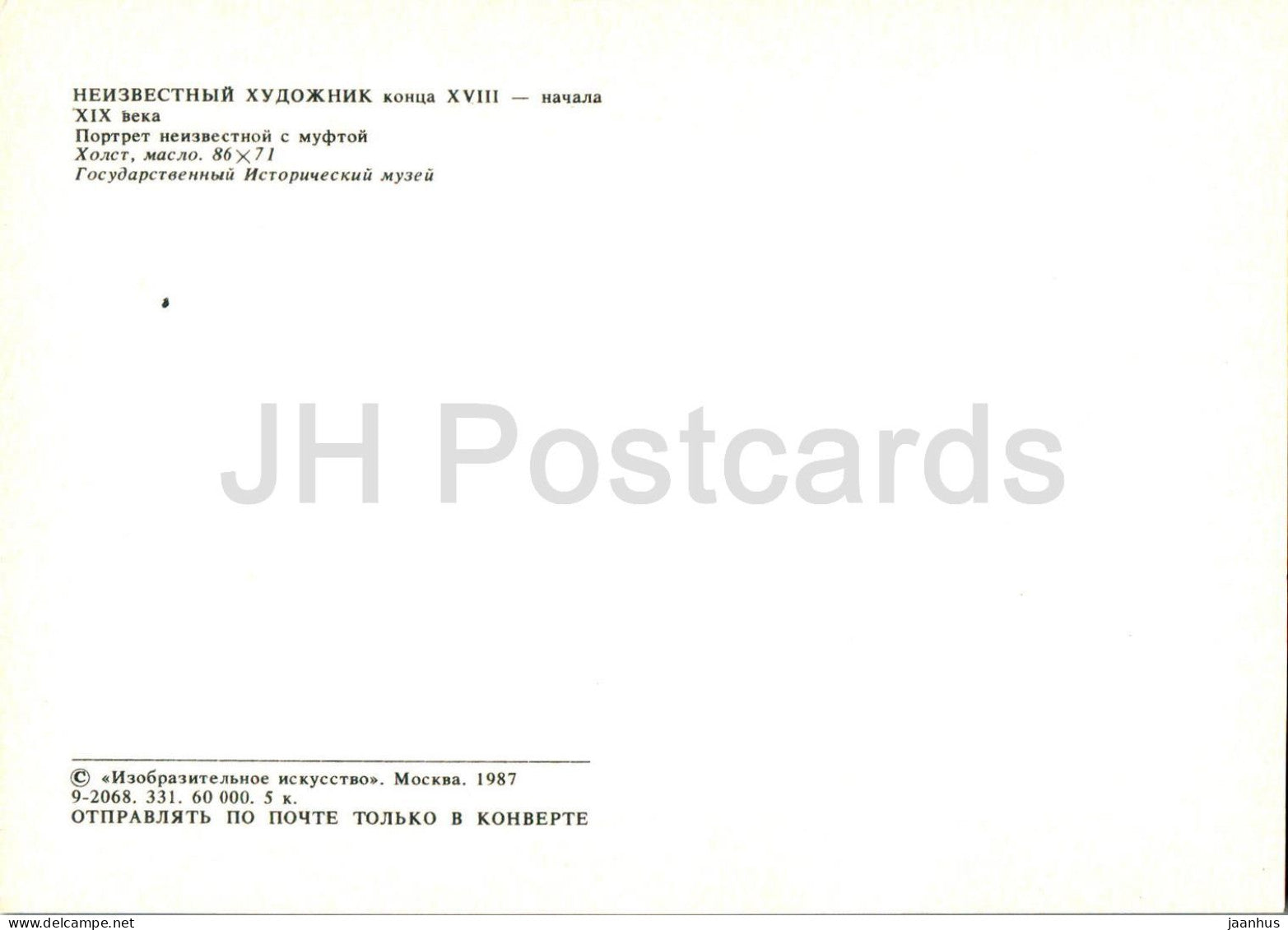 painting by Unknown Artist - Portrait of an Unknown Woman with a Muff - Russian art - 1987 - Russia USSR - unused