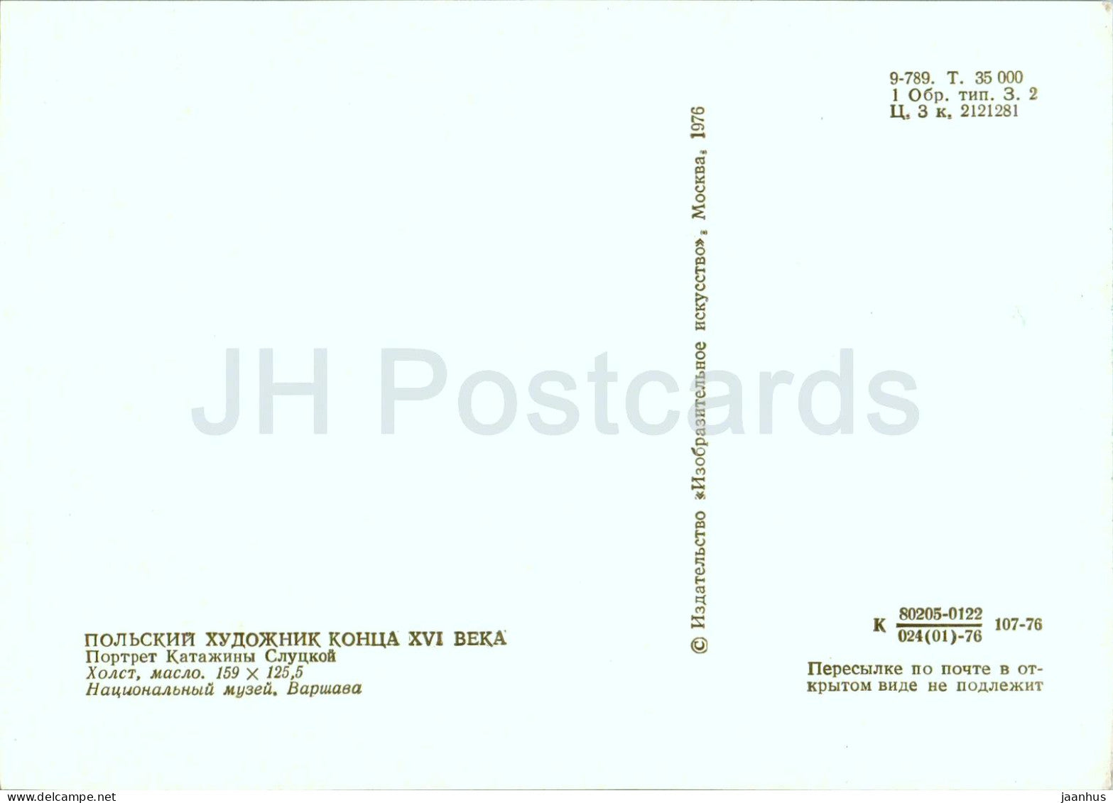 painting by Unknown Artist - portrait of Katarzyna Slutzka - Polish art - 1976 - Russia USSR - unused