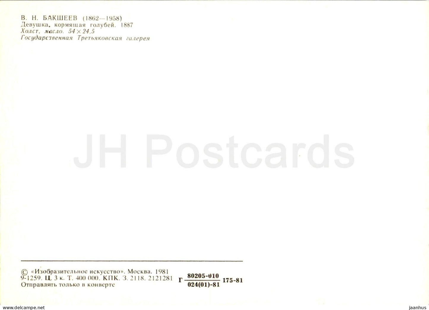 painting by V. Baksheev - Girl feeding pigeons - birds - Russian art - 1981 - Russia USSR - unused
