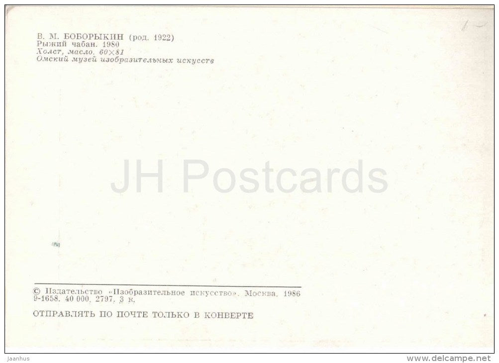 painting by V. Boborykin - Red shepherd , 1980 - donkey - russian art - unused