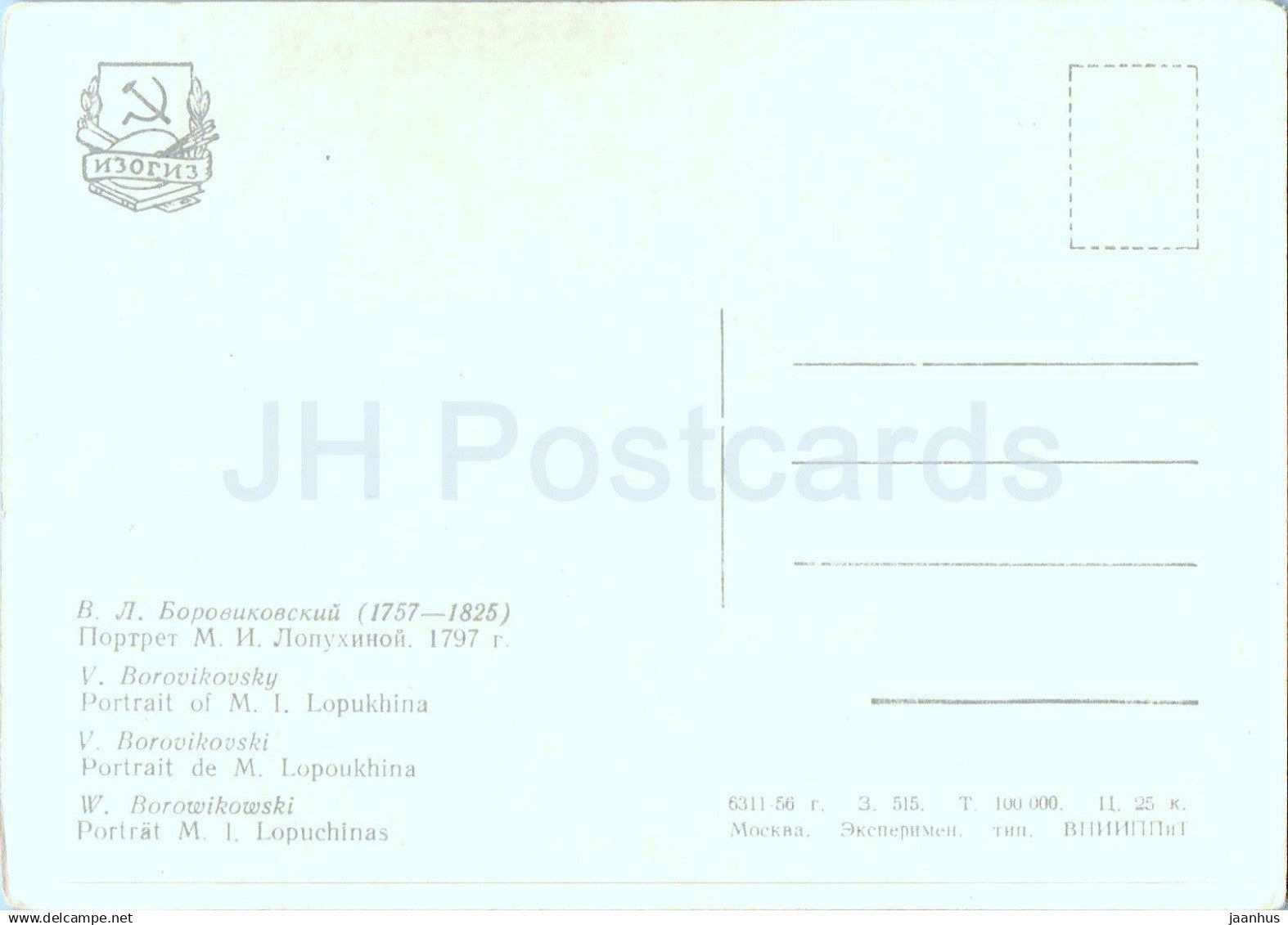 painting by V. Borovikovsky - Portrait of M. Lopukhina - young woman - Russian art - 1956 - Russia USSR - unused