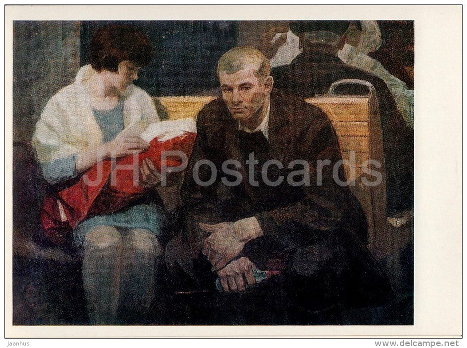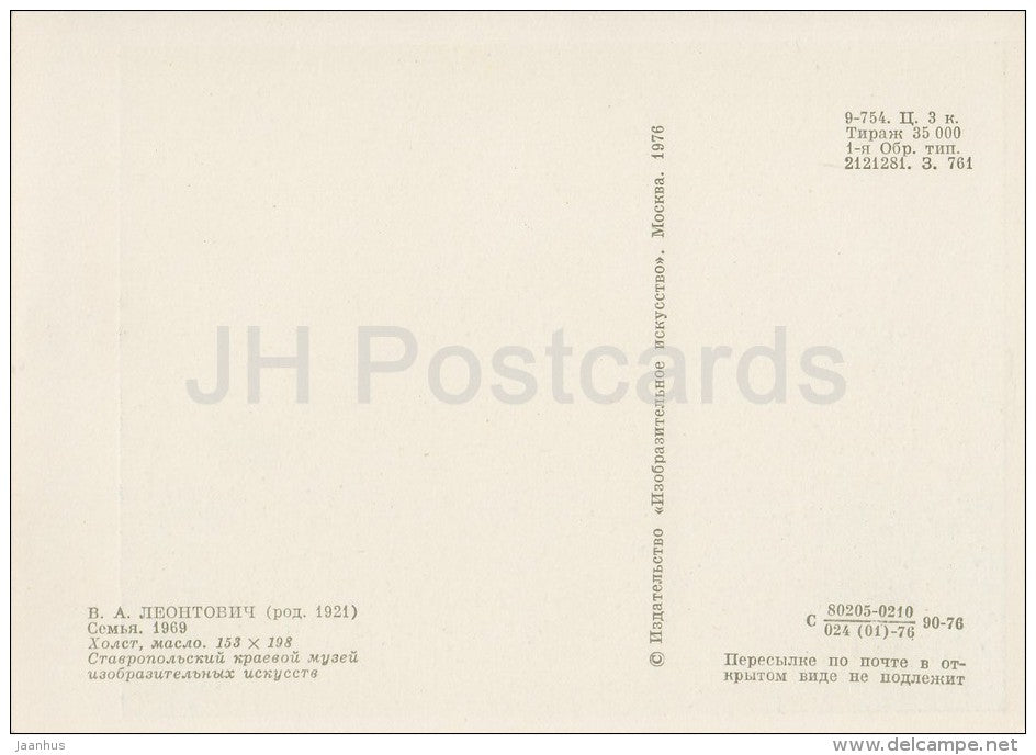 painting by V. Leontovich - The Family , 1969 - passenger wagon - Russian art - Russia USSR - 1976 - unused