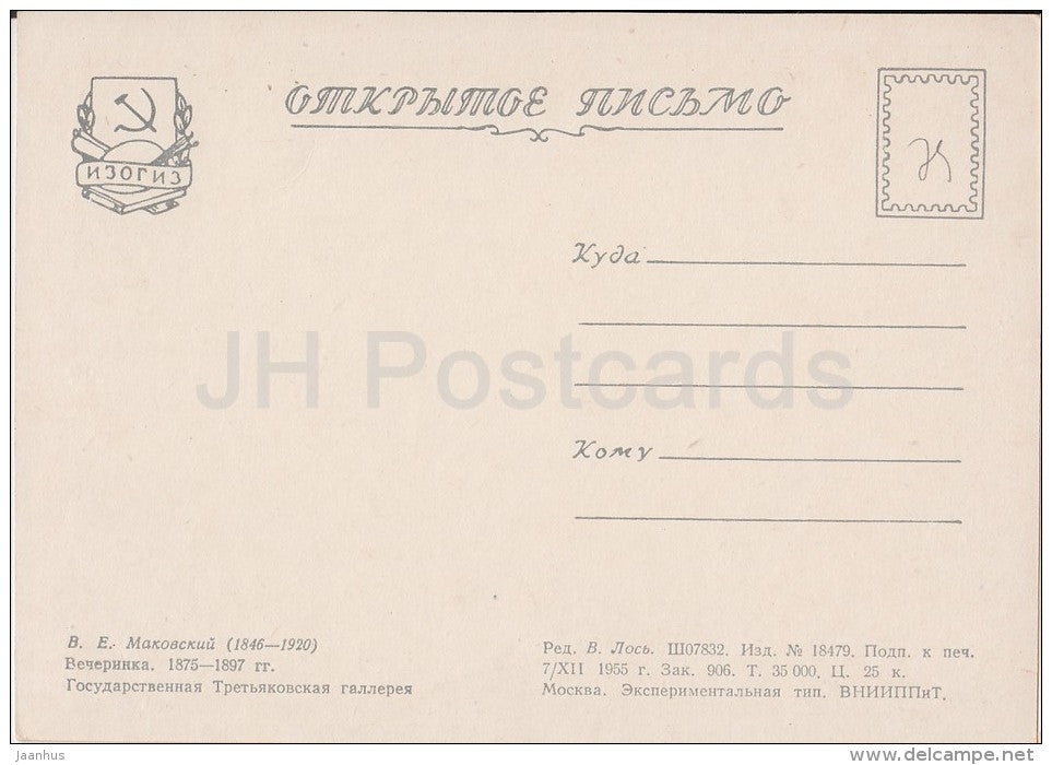 painting by V. Makovsky - A Social Evening - Russian art - 1955 - Russia USSR - unused