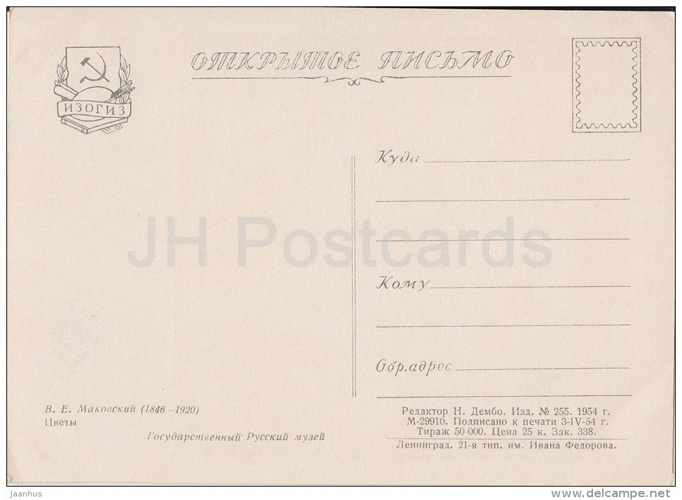 painting by V. Makovsky - Flowers - vase - Russian art - 1954 - Russia USSR - unused