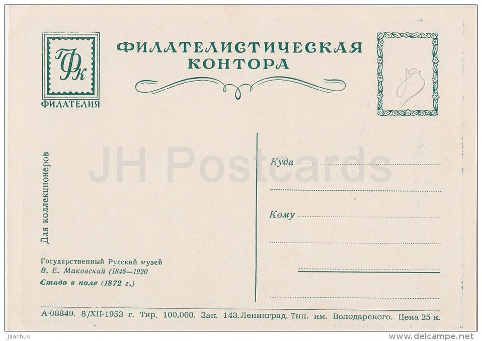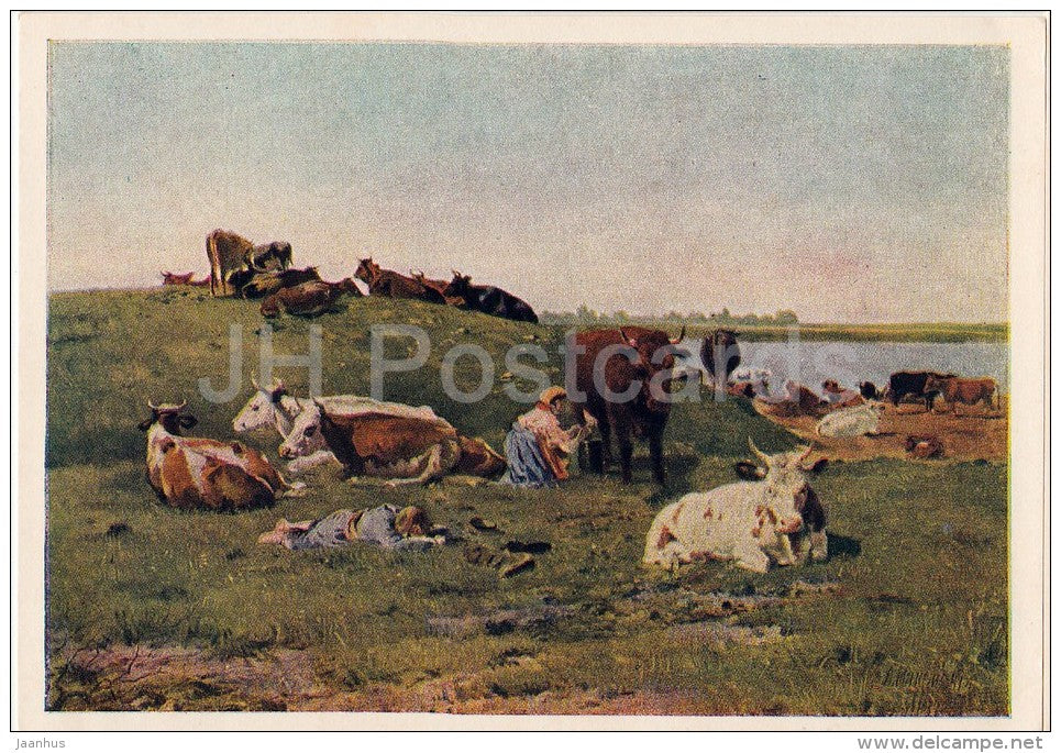 painting by V. Makovsky - Herd in the field , 1872 - Russian art - 1953 - Russia USSR - unused