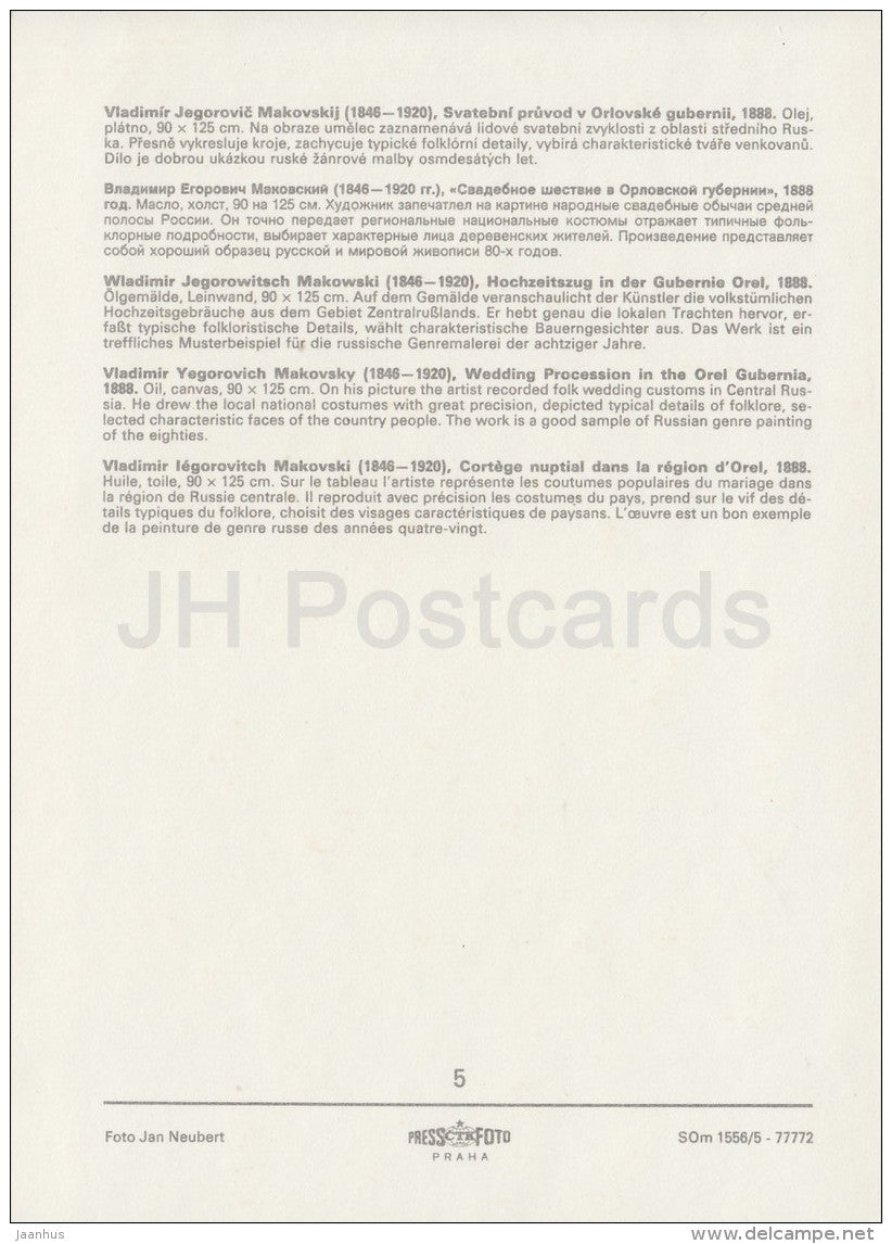 painting by V. Makovsky - Wedding Procession in Orel province Russian art - large format card - Czechoslovakia - unused