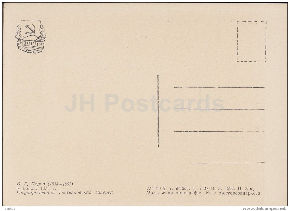 painting by V. Perov - 1 - Fisherman - fishing - man - Russian art - 1961 - Russia USSR - unused