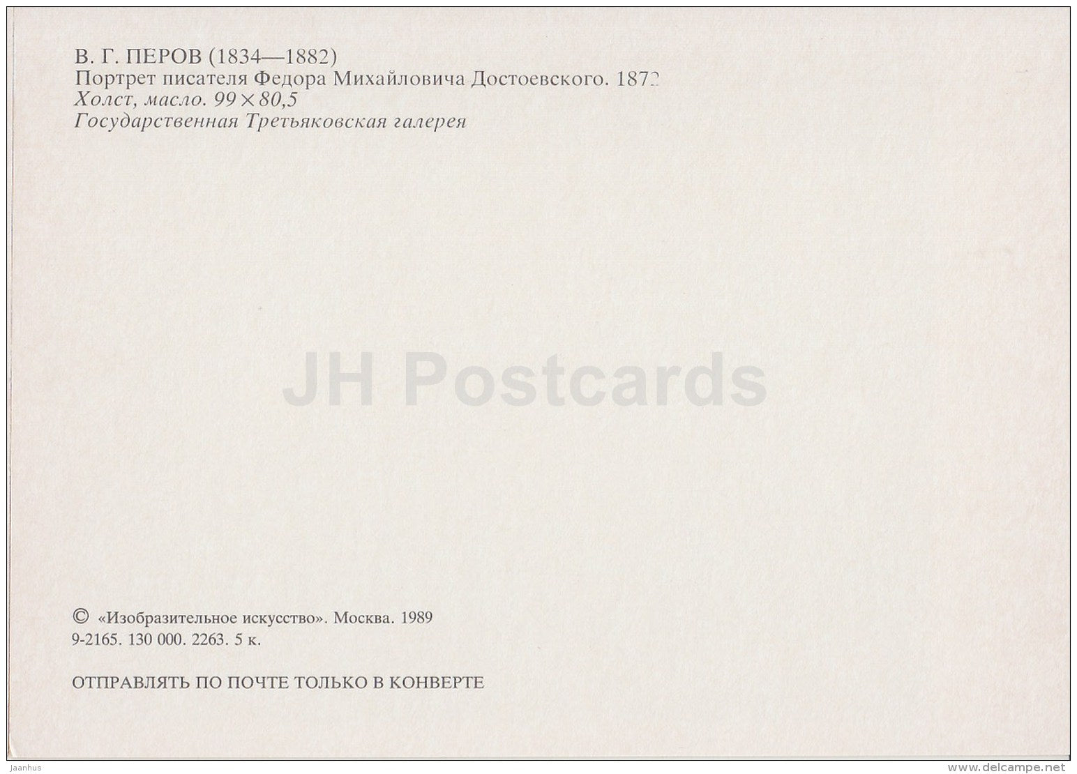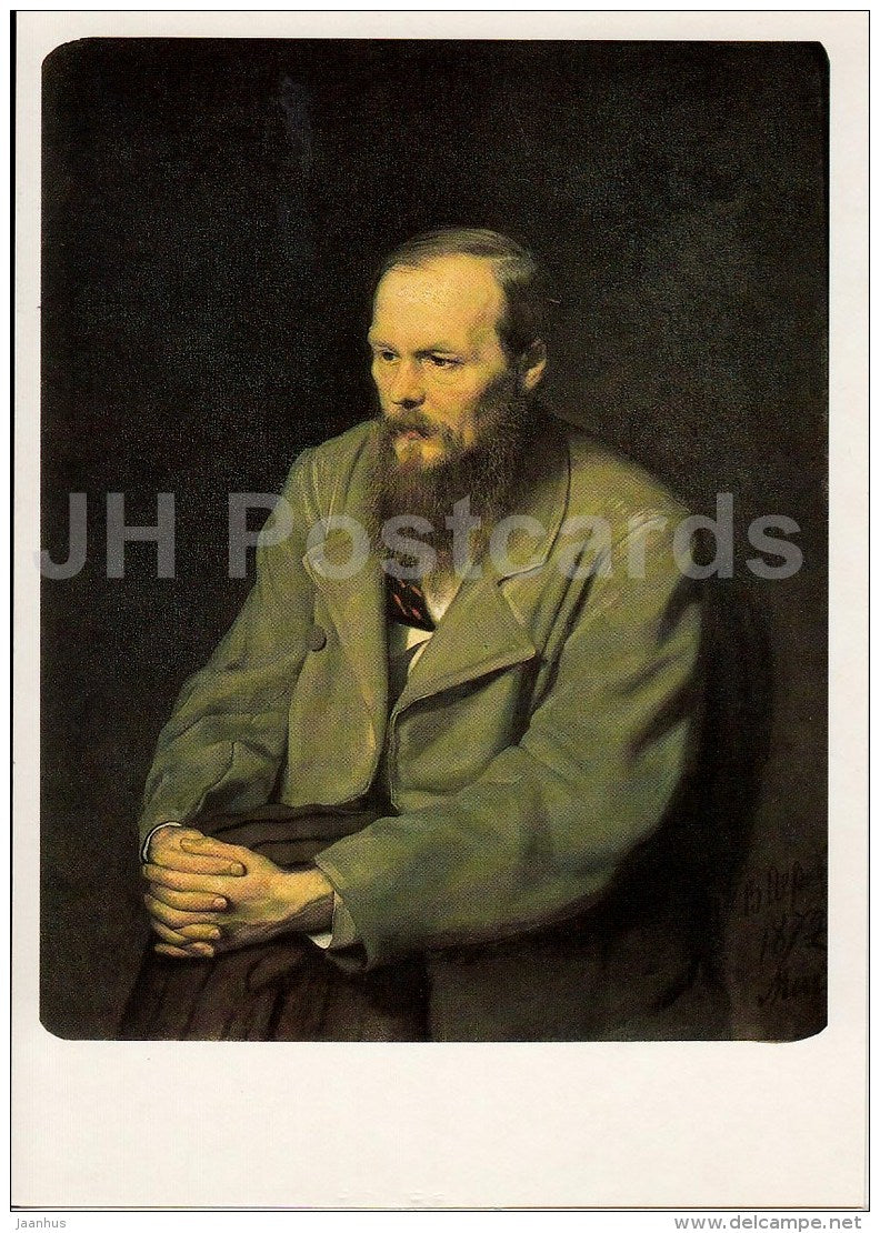 painting by V. Perov - Portrait of Russian Writer F. Dostoyevsky , 1872 - Russian art - 1989 - Russia USSR - unused