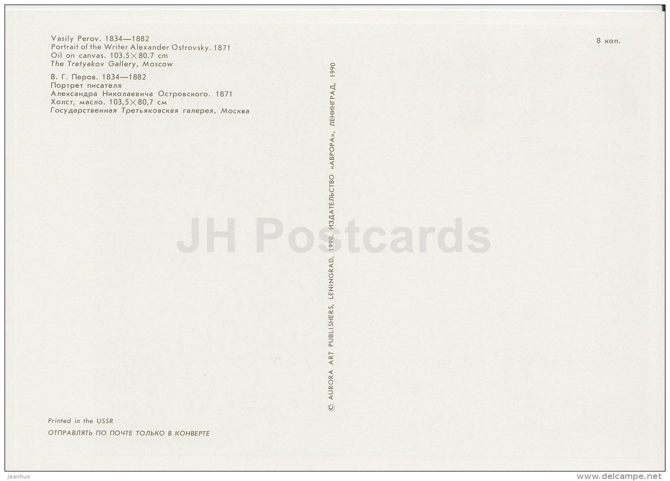 painting by V. Perov - Portrait of writer A. Ostrovsky - Russian art - large format card - 1990 - Russia USSR - unused
