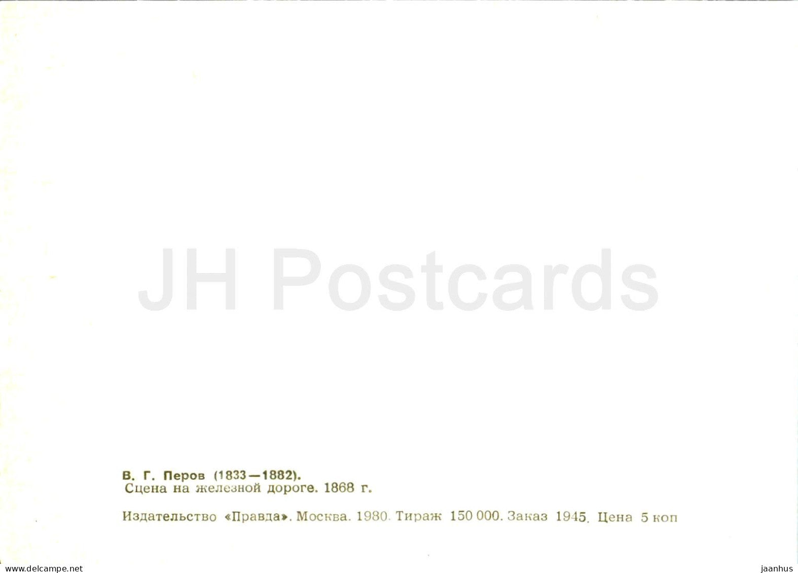 painting by V. Perov - Railway scene - Russian art - 1980 - Russia USSR - unused