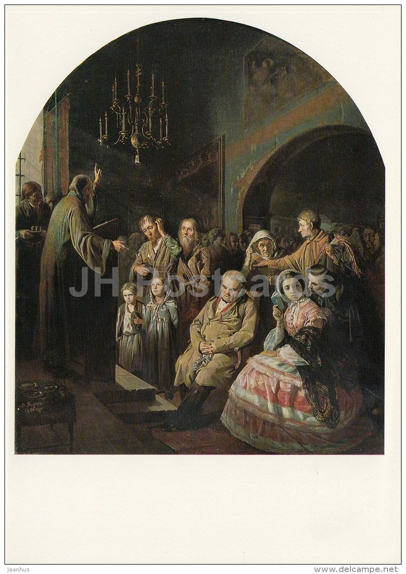 painting by V. Perov - Sermon in the Village Church - Russian art - large format card - 1990 - Russia USSR - unused