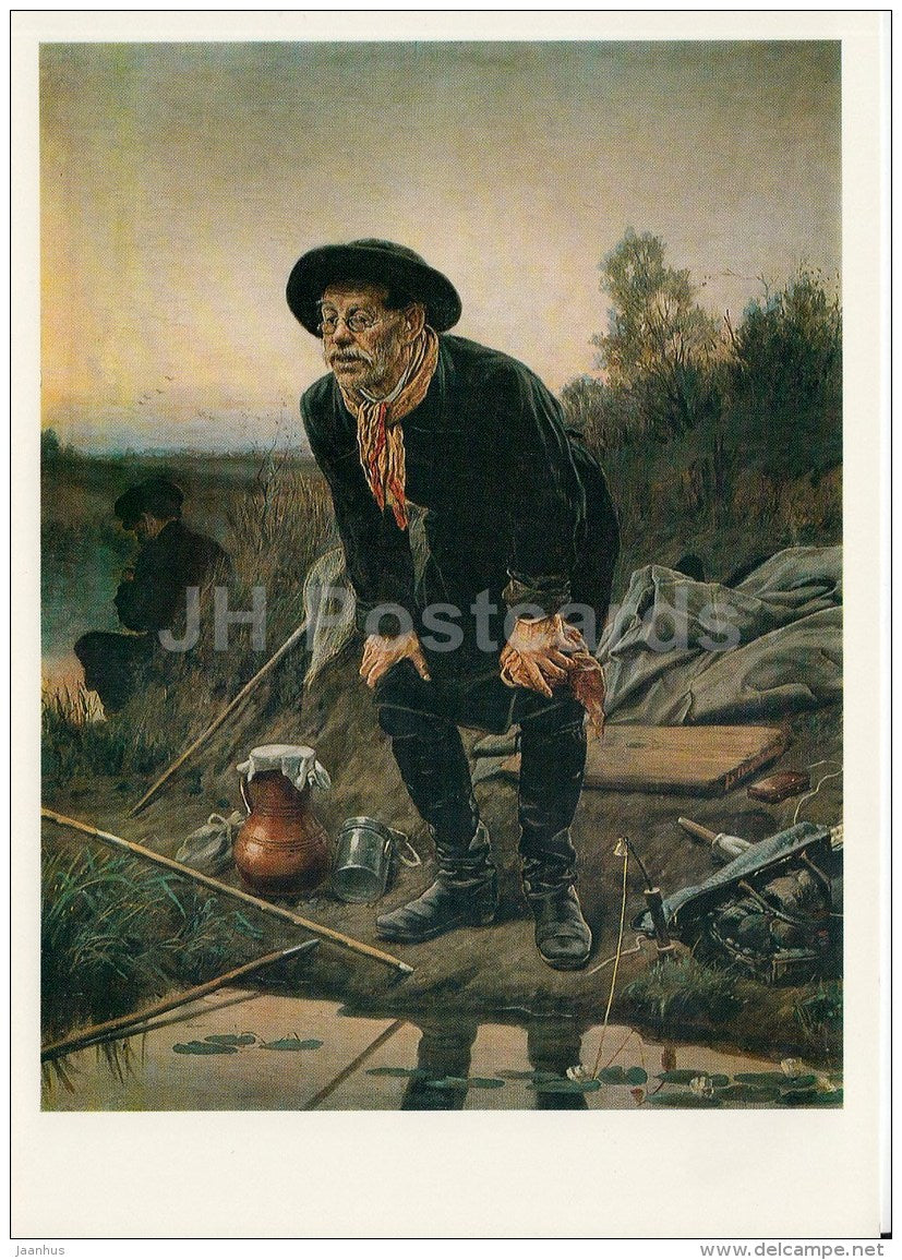 painting by V. Perov - The Fisherman , 1871 - Russian art - large format card - 1990 - Russia USSR - unused