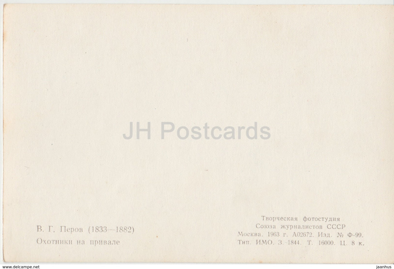 painting by V. Perov - The Hunters at Rest - gun - hare - 1963 - Russia USSR - unused