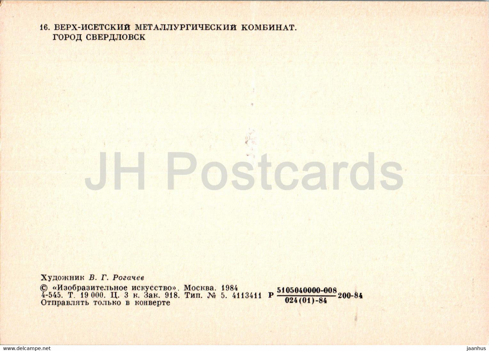 painting by V. Rogachev - Sverdlovsk Verkh-Iset metallurgical plant - Urals - Russian art - 1984 - Russia USSR - unused