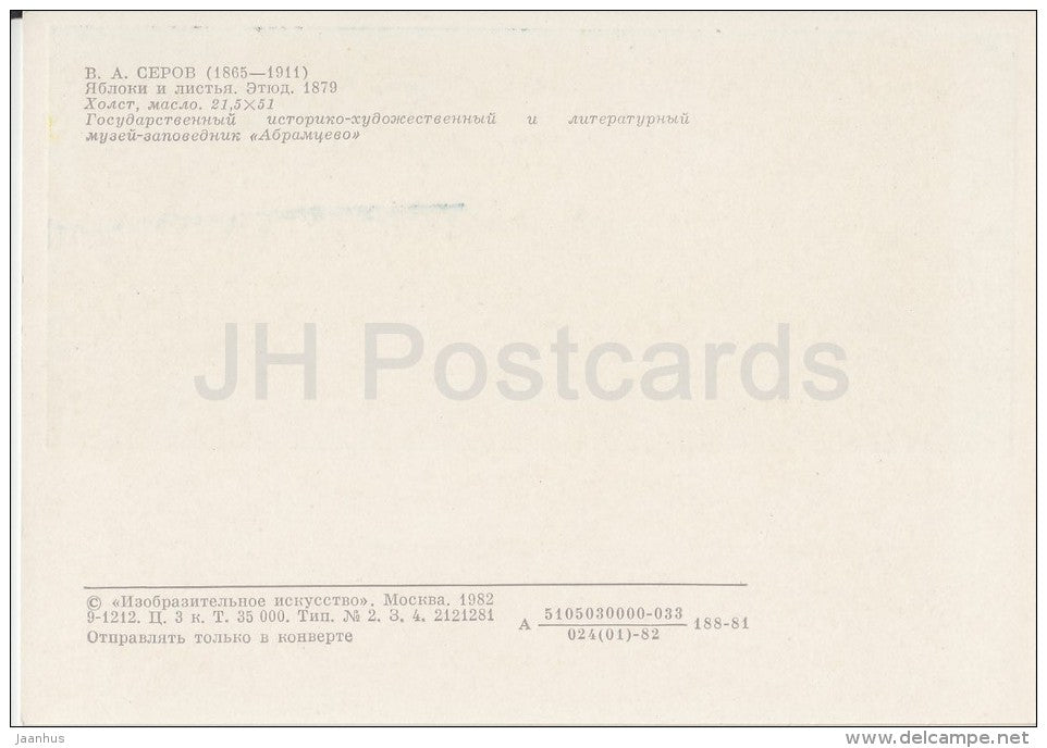 painting by V. Serov - Apples and Leafs , 1879 - Russian art - Russia USSR - 1982 - unused
