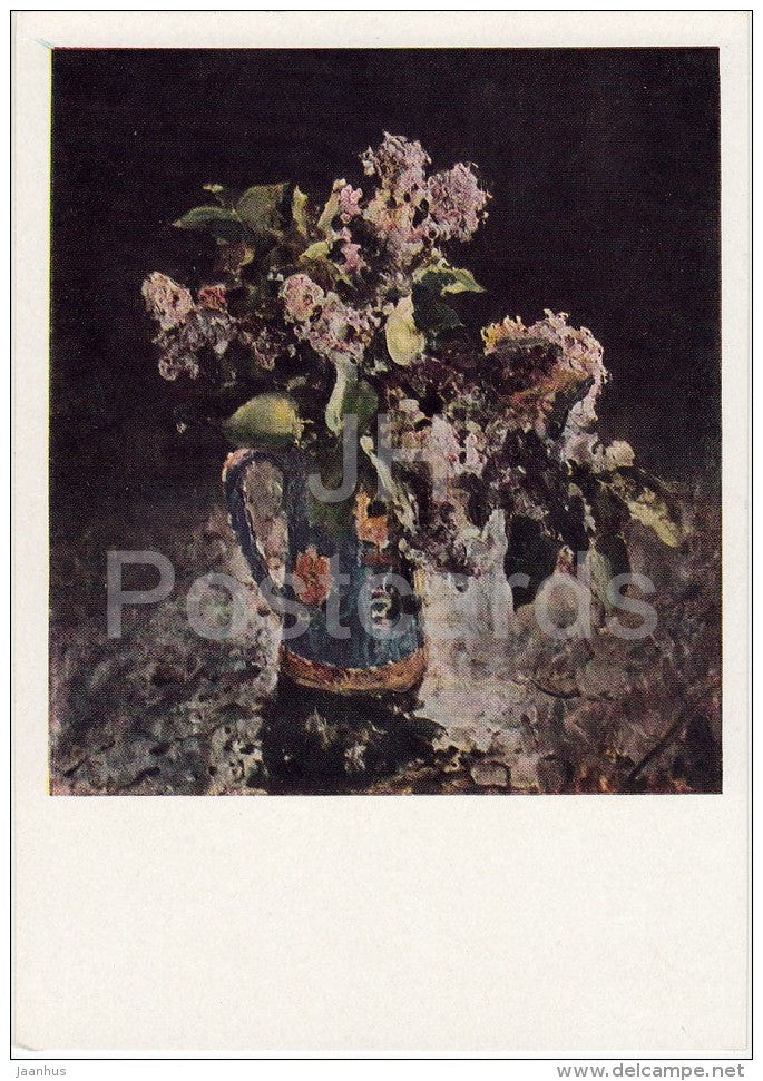 painting by V. Serov - lilac - flowers - vase - Russian art - 1965 - Russia USSR - unused