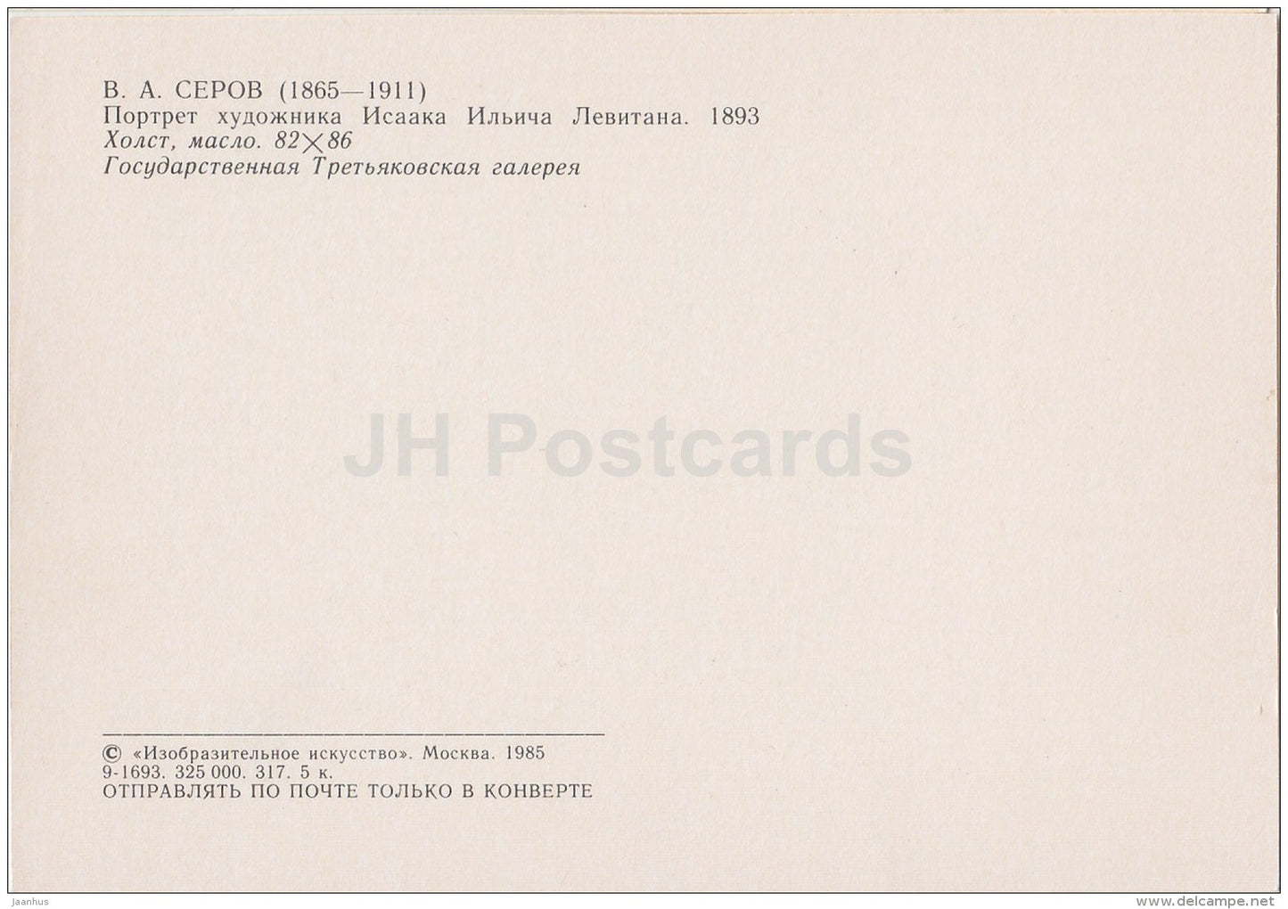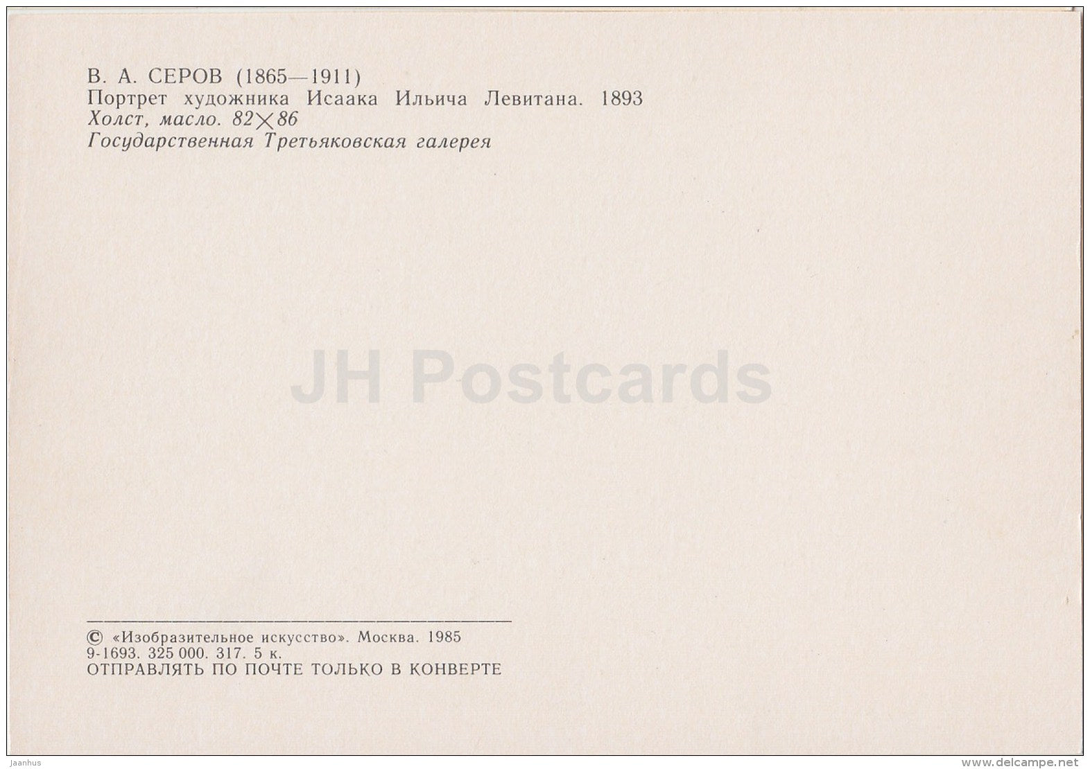 painting by V. Serov - Portrait of Russian artist I. Levitan , 1893 - man - Russian art - 1985 - Russia USSR - unused