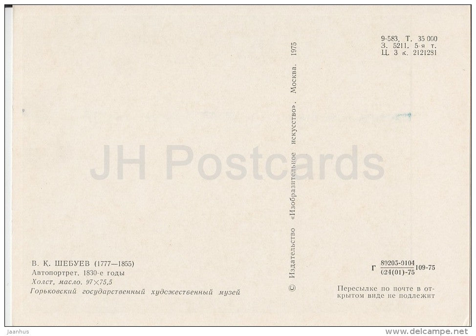 painting by V. Shebuyev - Self-Portrait , 1830s - Russian art - 1975 - Russia USSR - unused