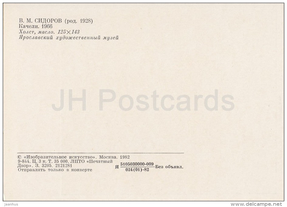 painting by V. Sidorov - Swing , 1966 - Russian art - Russia USSR - 1982 - unused
