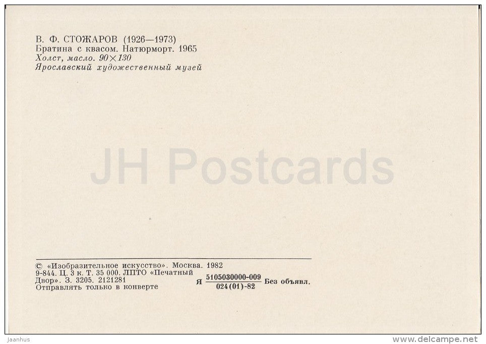 painting by V. Stozharov - Bowl with Kvass . Still Life , 1965 - Russian art - Russia USSR - 1982 - unused