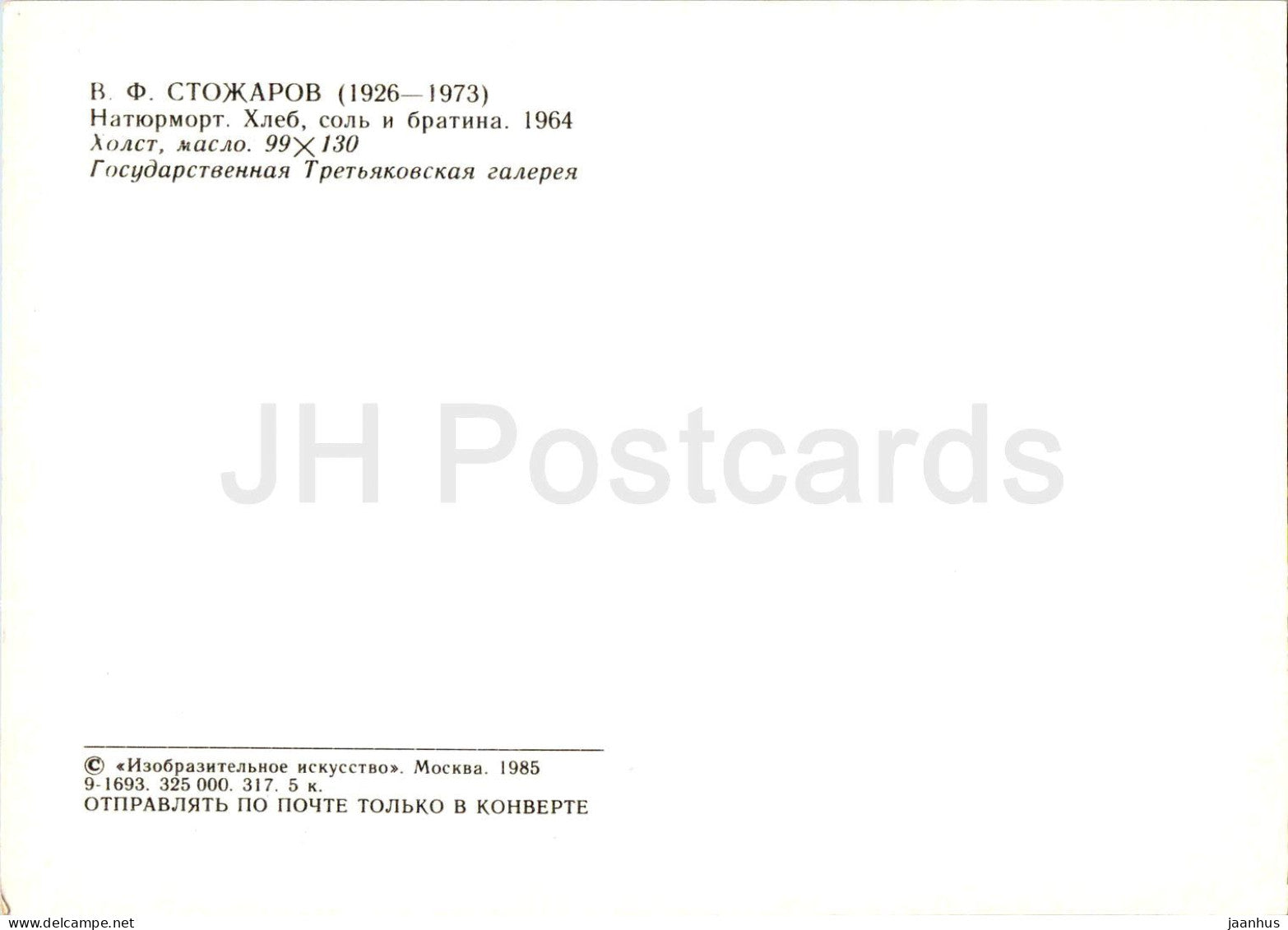painting by V. Stozharov - Still Life . Bread , salt , ladle - Russian art - 1985 - Russia USSR - unused