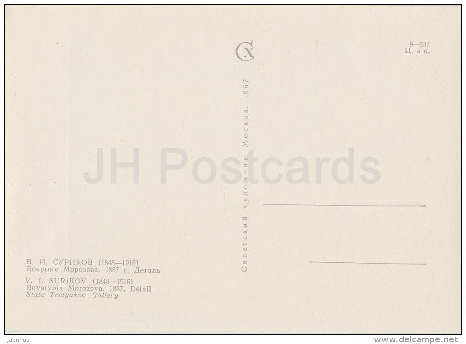 painting by V. Surikov - Boyarynia Morozova . Detail , 1887 - woman - Russian art - 1967 - Russia USSR - unused