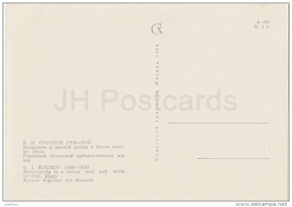 painting by V. Surikov - Boyaryshnia in yellow coat and white kerchief - Russian art - 1966 - Russia USSR - unused