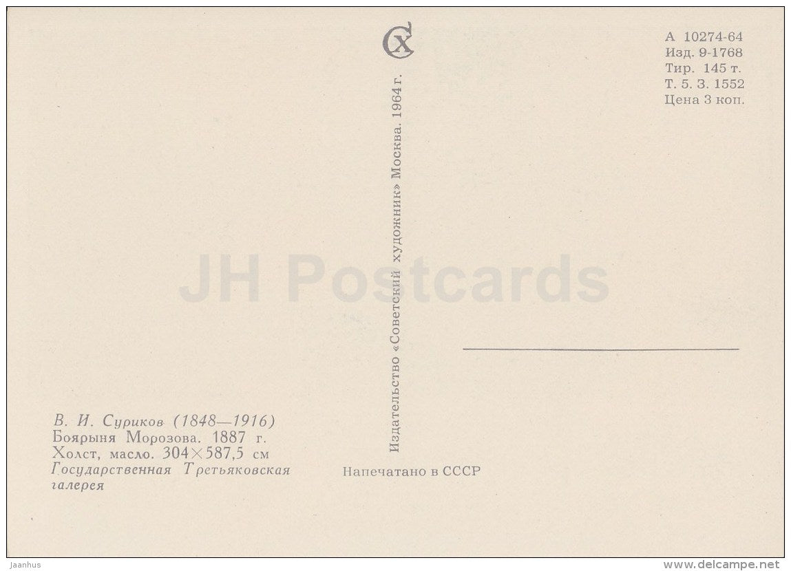 painting by V. Surikov - Noblewoman Morozova , 1887 - sledge - Russian Art - 1964 - Russia USSR - unused