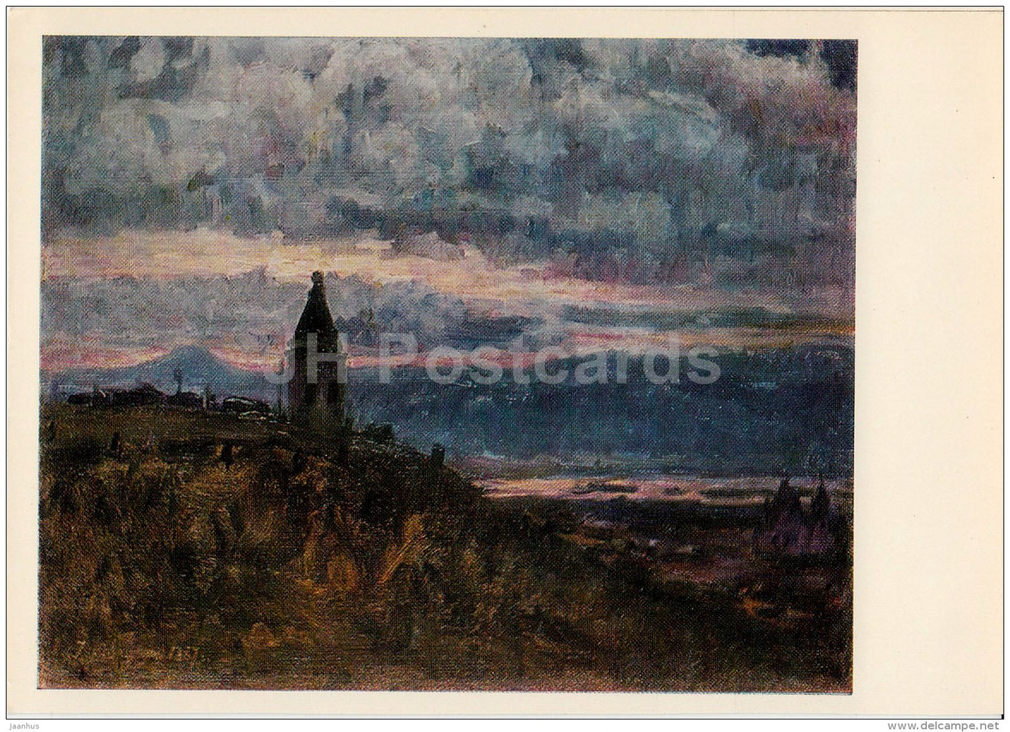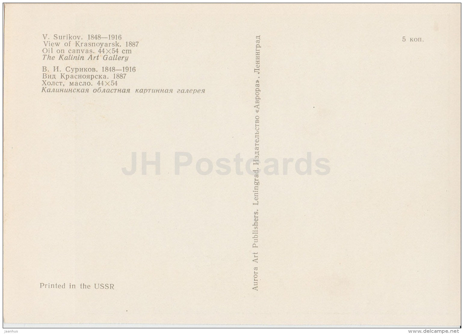 painting by V. Surikov - View of Krasnoyrask , 1887 - Russian art - Russia USSR - unused