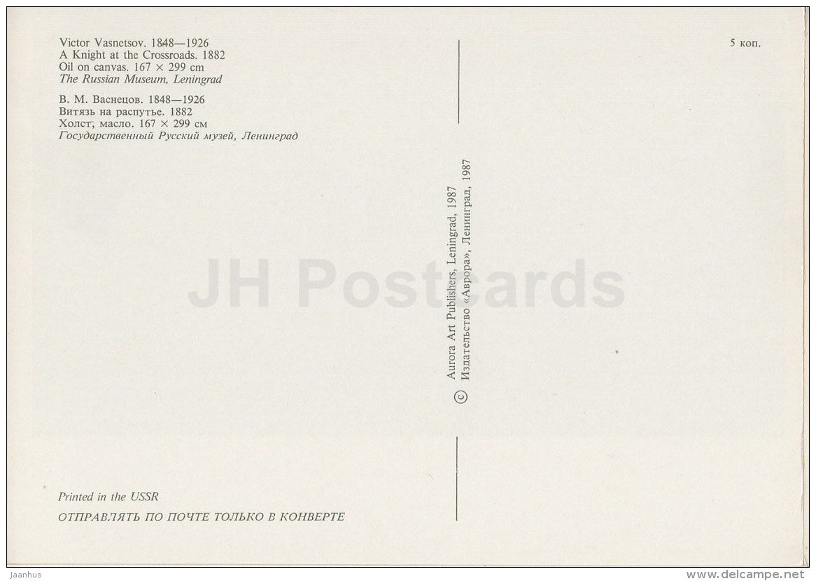 painting by V. Vasnetsov - A Knight at the Crossroads , 1882 - Fairy Tale - Russian Art - 1987 - Russia USSR - unused