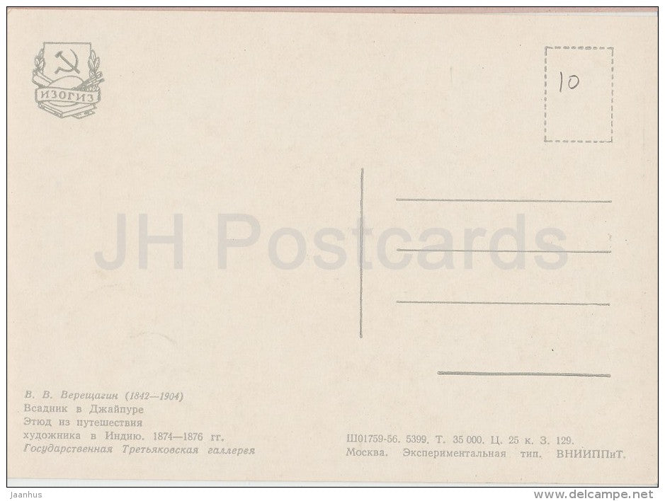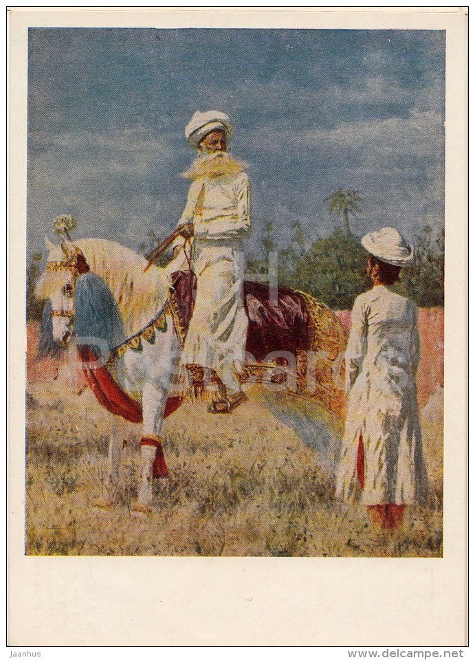 painting by V. Vereshchagin - Rider in Jaipur , 1874-76 - horse - India - Russian art - 1956 - Russia USSR - unused