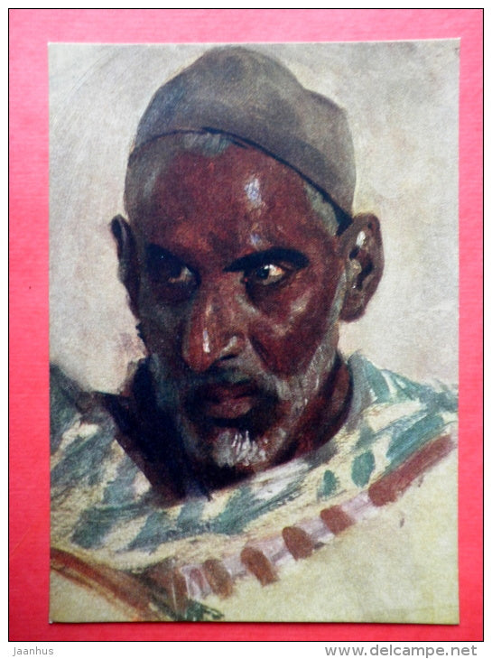 painting by Vasily Yefanov - Indian Worker - man - russian art - unused