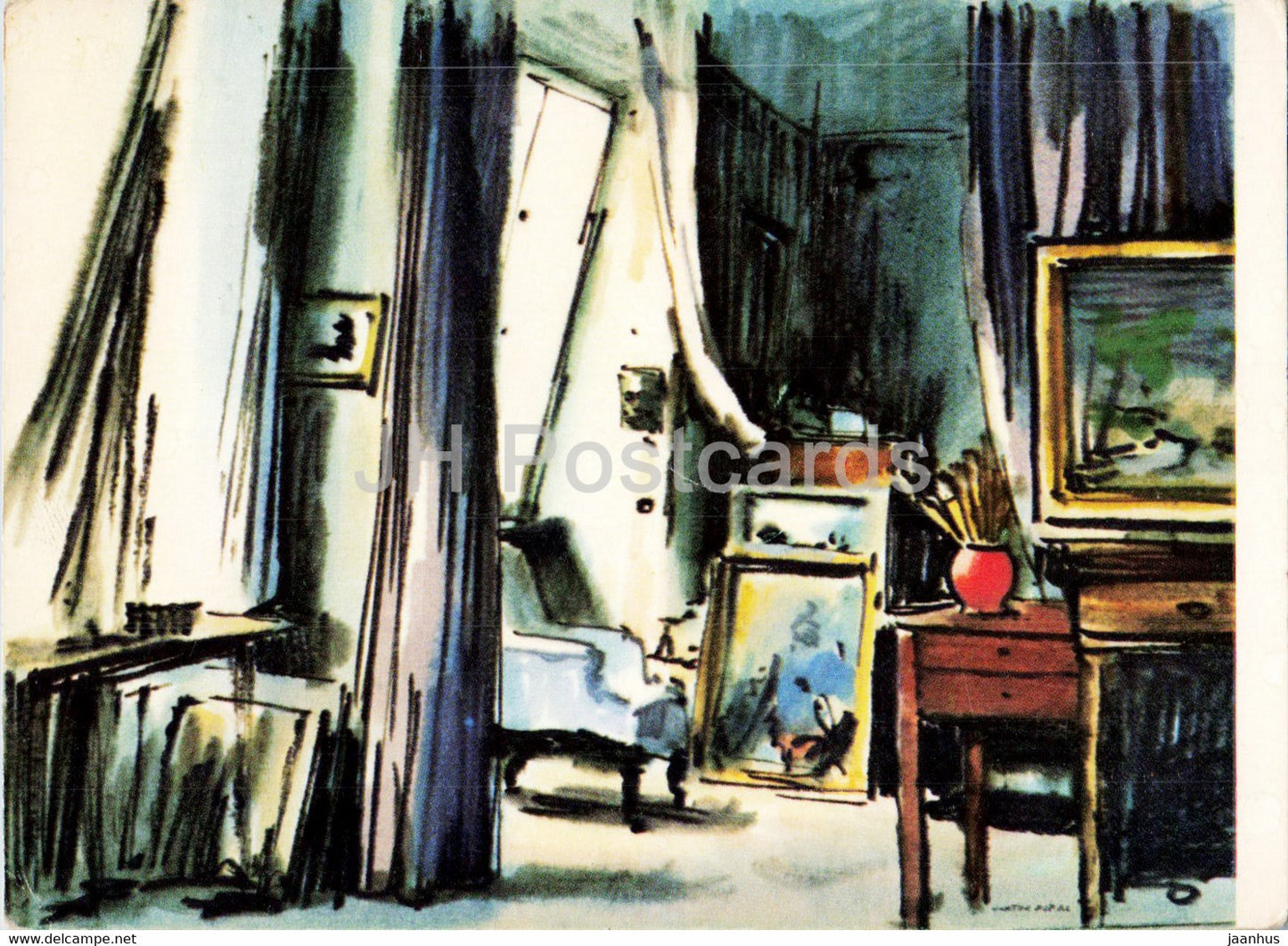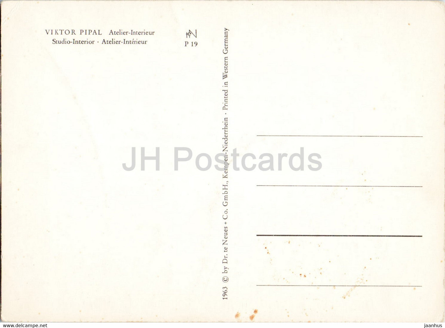 painting by Viktor Pipal - Atelier Interieur - Studio interior - german art - 1963 - Germany - unused