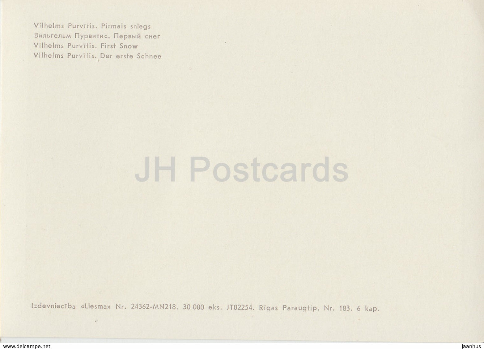 painting by Vilhelms Purvitis - First Snow - Latvian art - Latvia USSR - unused
