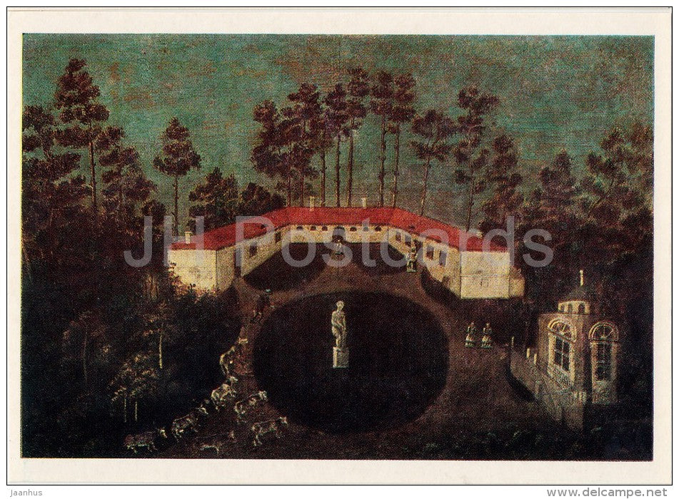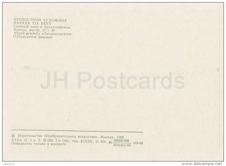 painting by Villain Artist - Barnyard in Arkhangelskoye - Russian art - Russia USSR - 1980 - unused